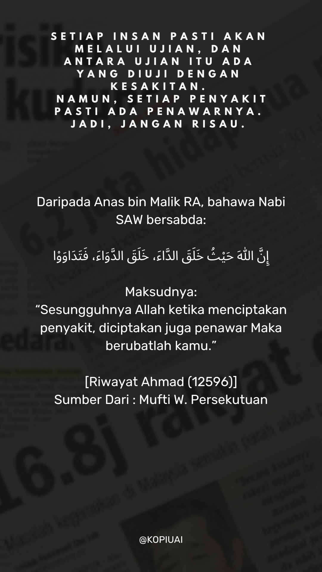 Dirumus khas oleh “Pasukan Ustaz Azhar Idrus (UAI)” sebagai ikhtiar untuk mencegah penyakit 3 serangkai