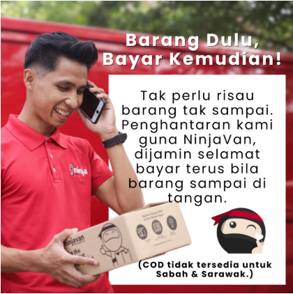Tak perlu bimbang, kami sediakan kaedah COD (Cash On Delivery). Ini bermakna anda hanya bayar apabila barang tiba di tangan. Kalau parcel tak sampai, anda tidak perlu bayar langsung. Kami utamakan kepercayaan pelanggan lebih berharga daripada sebarang jualan.